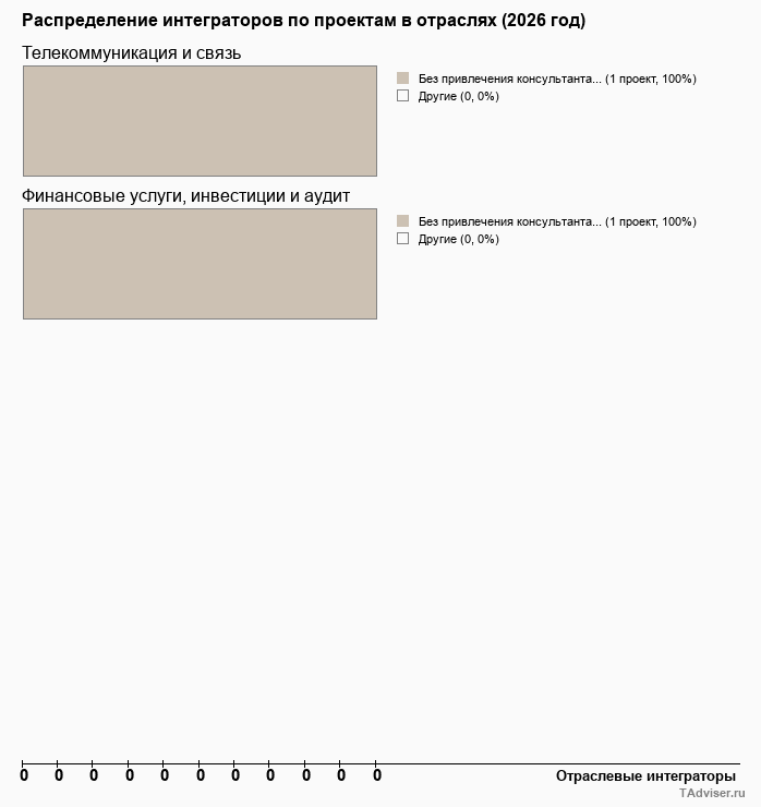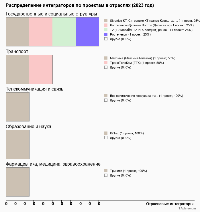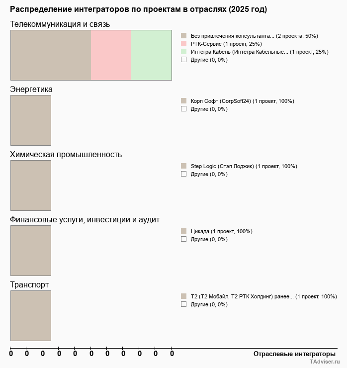 Отраслевое распределение по количеству проектов внедрений