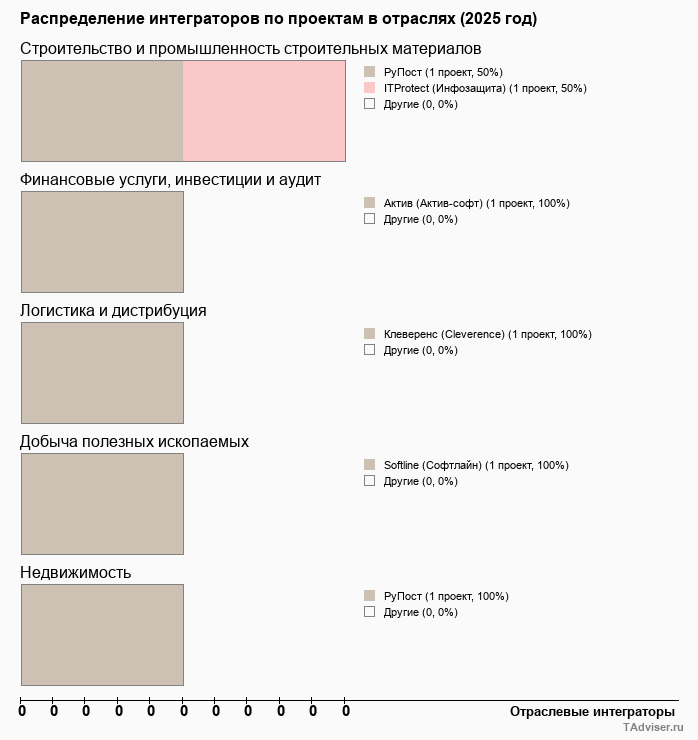 Отраслевое распределение по количеству проектов внедрений