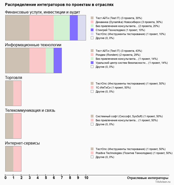 Отраслевое распределение по количеству проектов внедрений