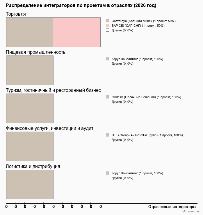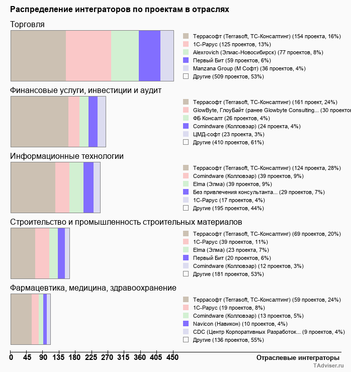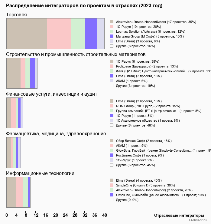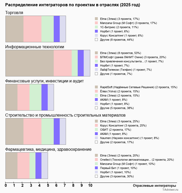Отраслевое распределение по количеству проектов внедрений